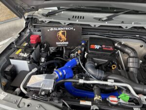 愛知県豊田市のSUNRING(サンリング)では、イタリア発の世界的チューニングブランド ALIENTECH(エイリアンテック)正規施工店として、スズキ ジムニーJB64W 4型のECUチューニング STAGE2 ハイオク仕様を施工しました。